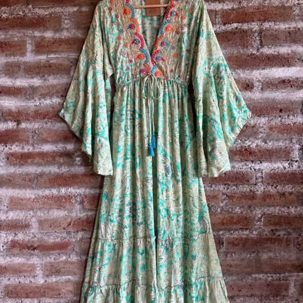Vestido Seda Bordado